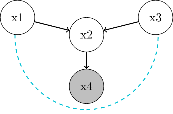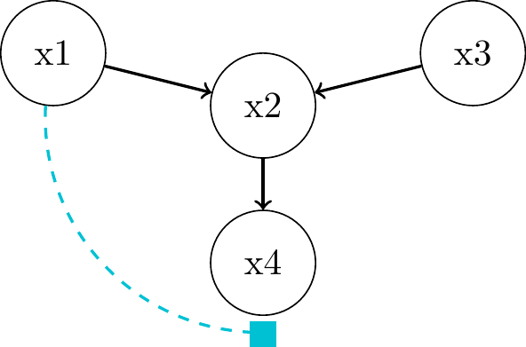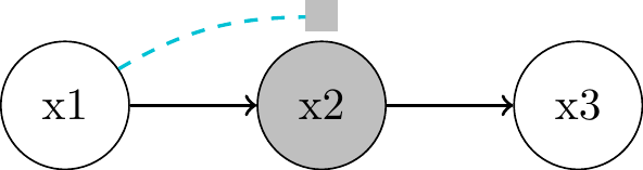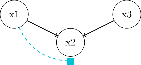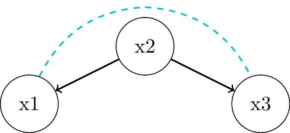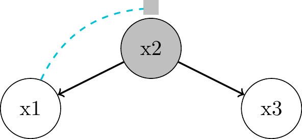 associated through \(x_2\) as common cause or confounder"Local Markov Assumption": we can block the associative path by conditioning on parent \(x_2\)