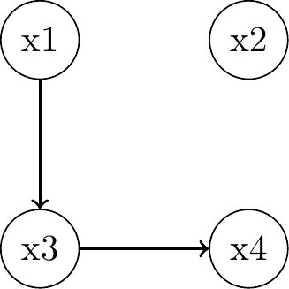 \(P_{joint} = P(x_1)P(x_2)P(x_3 \mid x_1)P(x_4 \mid x_3)\)
