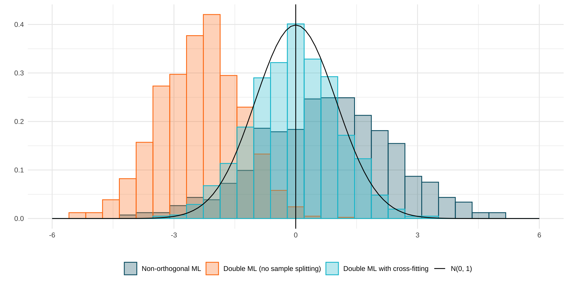 => Nuisance parameters induce no bias by overfitting (Chernozhukov et al. (2018)).